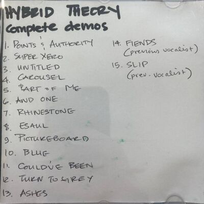 Jeff Blue's One Step Closer: From Xero to #1: Becoming Linkin Park book describes the very first demo recorded with Chester Bennington in early May 1999, soon after the band changed their name to Hybrid Theory, as a 8-track disc containing much of the same content as Complete Demos,[1] which expands the disc with 6 extra tracks.