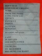• This was Linkin Park's first performance of "Reading My Eyes". Xero had performed the song at some point in 1997 and/or 1998 based on comments made by the band around the time of these Japan shows. After downloading the song on a Linkin Park fansite, "the song came back to them" and they rehearsed it for this short tour.