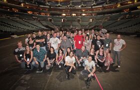 - Before the soundcheck started, there was about a 20 minute session where Mike and Joe were on stage jamming by themselves. Mike was playing the "Blackout" piano parts and Joe was playing the "Blackout" samples over it for about 1/4 of this jam. After that, Chester, Phoenix, and Rob joined them at the front of the stage with paper and pens, making setlists for the tour (as seen on the LPTV episode about this rehearsal). A few minutes later, Mike gives a speech to the fans gathered in the arena and says, "Welcome to soundcheck. We are making our setlists right now. Brad is sick right now so he is not soundchecking, but he will be at the show. All of his guitar parts at the soundcheck are sampled for right now but we want to make sure you know that we do not do that live, ever. Also, we are rehearsing songs tonight that you will not see at the show tonight."