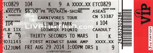 - A fan named Brandon (Broman) met Linkin Park during the meet and greet and during the actual show, Mike handed off the microphone to him and another fan and they both rapped verse 2 of "Faint".