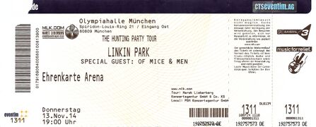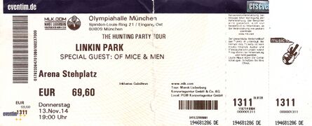 - In a May 2020 Twitch stream, Of Mice & Men told a story about this show, saying, "When we did the tour with Linkin Park, we have a song that is called "Another You." It starts off with a really clean guitar part, and me singing a falsetto high note that directly correlates with what he's playing. We were in Germany in what I think is Munich but I looked over and Mike and Chester were both standing side stage. This is one of the first days of tour so we hadn't really gotten to hang out much. So I got really star struck and nervous that I totally fucked up that note. And just fucked up the whole song right at the very start. Aaron had to adjust his note. I just totally biffed the song because Mike and Chester were watching side stage and I got so nervous. And I remember immediately afterwards we were all in the dressing room, and before any of us say anything, Allen is like "he was right there! he was right there and I fucked up!" Not only was the 30,000 people sold out audiences crazy enough, we'd see them watching and we'd be like "OH MY GOD there's Linkin Park right there." And I just put my hand on his shoulder and I said "we fucked it up."