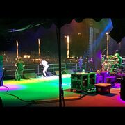 - The stage was on a river float, with large metal bars across the front of it. The crowd could not get close to the stage at this show.
