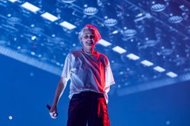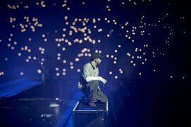 - Mike went into the crowd during the extended portion of his solo medley and gave his signed hat to a fan who had always joined his Twitch streams in 2020. He rapped the demo verse of "Lift Off" during this part. Mike extended his synth solo a little after the song ended.