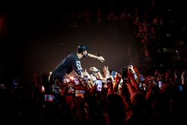 - Emily jumped into the crowd and crowdsurfed on "Two Faced".