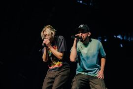 - Before "Where'd You Go", Mike said, "Question for you guys, can I please see a show of hands of the people who have seen Linkin Park play live before? Fantastic. Can I please see a show of hands who are seeing us for the first time? Wow, that's like the most. How many of you guys are Fort Minor fans?"