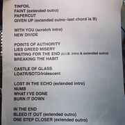 | 18. | Bleed It Out | Ext. Bridge w/ "Reading My Eyes" Verse 1; Ext. Outro |