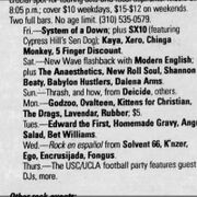 - Xero opened for System Of A Down. This show in general is pretty interesting from a historical standpoint. System Of A Down was still a local/regional band (although a pretty well-established one) in 1997, in fact the period they were playing shows at places like the Whisky and the Viper Room was around the time they started getting major label attention (they were ultimately signed by none other than Rick Rubin that year), and SX-10 would have just formed not long before this show as well...it may have even been THEIR first show too. Mike said in one of the Sunset Strip Music Festival 2013-related interviews that Xero played four out of their first five shows on Sunset Strip.