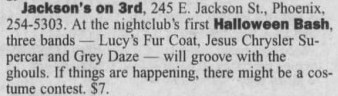 - The Phoenix New Times clipping with an ad for this show was submitted for LPLive by Jodi Wendt.
