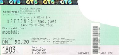 - A review for this show says that Linkin Park won over the crowd and made it appear like it was a homecoming for them since they were so well received in Germany. Deftones had a lot of problems during their set - Chino was very drunk, his guitar wouldn't work and he had a roadie tying his shoes for him. Stefan and Chi were arguing over the setlist mid-show and due to Chi and Chino laying on the ground, Abe left the stage twice before the show was over.