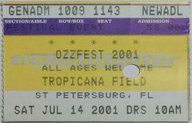 - This show was originally announced for Festival Park in Zephyrhills, FL. Due to one fan dying and twenty more being injured at Livestock 2001 (a show Linkin Park played in April), the organizers at the venue decided to cancel Ozzfest there. Tropicana Field picked up the show instead.