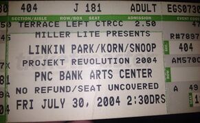 • LPTimes.com 7/31/2004 report: "Jay-Z joined the Revolution, posted by Jas, 07/31/04. EANx30 posted on the LPMB that at the PNC show in Holmdel, NJ last night, Jay-Z joined LP during the encore. They played "Lying From You" / Dirt off Your Shoulder and then "Papercut" / Big Pimpin."