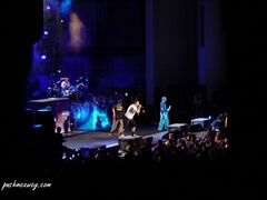 • Jay-Z came out during the encore break after "Crawling" and performed the first three Collision Course songs with Linkin Park as a total surprise. A Linkin Park Message Boards post the day after the concert mentioned two Collision Course songs, but as the only source, this was unconfirmed and the position in the setlist was not known. Due to Jay-Z coming out for the mash-ups, the band skipped both "Lying From You" and "Faint", but performed "Papercut" in full.