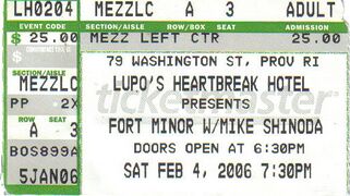 - The New York show was originally scheduled for the 4th, but it was moved, so Fort Minor added another date on the 4th, which turned out to be the Providence show. This show was not in the original touring plans, it was added later. This all happened on December 13, 2005.