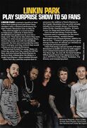 - It was announced after the performance that Busta Rhymes would join Linkin Park on the Projekt Revolution Tour.