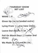 - The band performed for the first time a brand new version of "Wake", entitled "Wake 2.0".