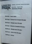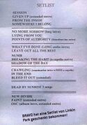 • After "Shadow Of The Day", Mike rapped the first verse of "Hands Held High" acapella and rapped the second verse over the Reanimated intro to "Crawling".