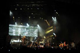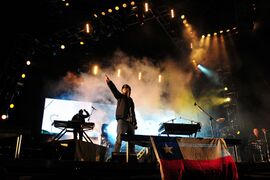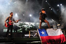 • The band displayed a Chile flag on the front of the stage. The flag was given by several fans during the Meet & Greet and had Linkin Park logos on the front of it.