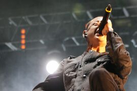 • Mike sang the chorus of "Burning In The Skies" during the bridge of "Bleed It Out".