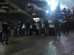 - Before the soundcheck started, there was about a 20 minute session where Mike and Joe were on stage jamming by themselves. Mike was playing the "Blackout" piano parts and Joe was playing the "Blackout" samples over it for about 1/4 of this jam. After that, Chester, Phoenix, and Rob joined them at the front of the stage with paper and pens, making setlists for the tour (as seen on the LPTV episode about this rehearsal). A few minutes later, Mike gives a speech to the fans gathered in the arena and says, "Welcome to soundcheck. We are making our setlists right now. Brad is sick right now so he is not soundchecking, but he will be at the show. All of his guitar parts at the soundcheck are sampled for right now but we want to make sure you know that we do not do that live, ever. Also, we are rehearsing songs tonight that you will not see at the show tonight."