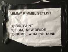• Burn It Down was played twice due to the sound being messed up on the first take (some instruments were not audible). "New Divide" was played twice due to Joe messing up the breakdown the first time.