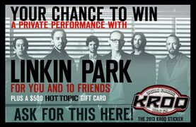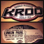 - KROQ held a contest where you could enter to win a private rehearsal by Linkin Park for you and ten of your friends. To enter, you had to pick up a KROQ sticker, fill out the back and turn it in on certain days and in certain locations specified by KROQ in the weeks leading up to the rehearsal. The winner was picked the day before, on July 31.