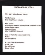 - The band performed a private show for the launch of the Harman Infinity One speakers, a recently announced collaboration with Harman by the band. There was no advanced notice given to the public about the show since it was private, but some Linkin Park fans near the venue did manage to get into the show. Ironically, an LPU Meetups event was occurring down the street at the exact same time but those fans were not informed of the performance.