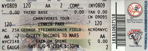 - Doors were delayed half an hour~ so 30 Seconds To Mars could do a longer soundcheck. This pushed back the set times, so Linkin Park went over the curfew (11:00pm) to perform their encore. This was worked out with city officials (there is a sound restriction after 11pm) before the show began.