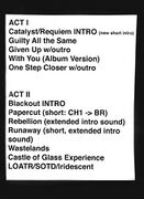 | Act I | Catalyst/Requiem Intro | w/ "Session", "1stp Klosr", "The Summoning", "Guilty All The Same" |