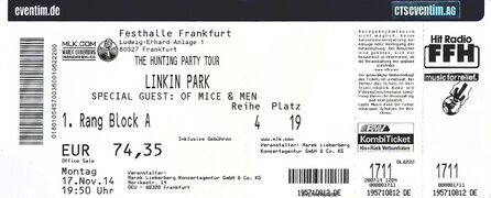 - Comments: Same taper as Frankfurt 2008, Mannheim 2008 and Düsseldorf 2008. "Until It's Gone" and "What I've Done" uploaded to YouTube on December 30, 2018.