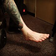 • Before the show, Chester broke his ankle playing basketball backstage. He jumped up and landed on a water bottle, breaking his ankle and sending him to the hospital. At the LPU M&G, he was on a scooter, but played the show on crutches and with the scooter. Mike painted his crutches black before the show started.