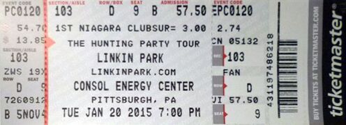 • On January 19, 2015, the band announced, "Linkin Park regret to inform their fans that they must withdraw from their next two shows in Pittsburgh on January 20th, and January 21 in Albany, NY, due to a leg injury of lead vocalist Chester Bennington - who has been diagnosed as requiring immediate medical attention. Chester says, "I need to take the proper time to assess the severity of my injury and apologize for any disappointment this has caused. I look forward to seeing you all again soon." Fans can seek refunds at point of purchase."