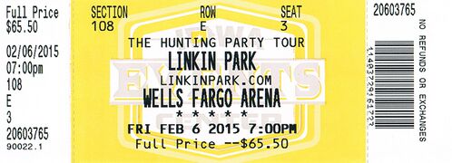 - On January 20, 2015, the band announced, "Linkin Park regret to inform their fans they must cancel the remaining dates of The Hunting Party tour through February 14th, due to a leg injury of lead vocalist Chester Bennington. The injury requires immediate medical attention making it physically impossible for Bennington to perform. Chester says, “I'm really disappointed this injury has made it impossible to continue with this tour. The first couple of shows were just magical. We will truly miss not being with our fans for the next few weeks. Hope to see you again soon." Fans can seek refunds at point of purchase."