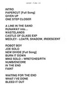 | 18. | Bleed It Out | Ext. Intro; Ext. Bridge w/ Sing-a-long; Ext. Ending |