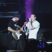 • During the bridge of "Bleed It Out", Chester conducted a sing-a-long with the crowd.