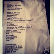 - Rebellion was listed on the setlist after "Papercut" in V4 of the setlist, but was dropped for an unknown reason in V5. V4 was seen earlier in the day on the backstage tours.