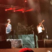 - During the bridge of "Bleed It Out", Chester conducted a sing-a-long with the crowd.