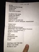 | 20. | Waiting For The End | Apaches Intro w/ "Until It Breaks" Verse 3; Wall Of Noise Outro |