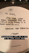 • Matt and Dan left the stage before "In The End" and returned for "Crossing A Line".