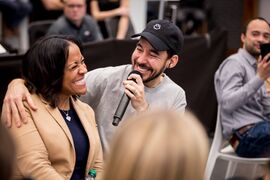 • Mike performed "In The End" with audience members Farina and Dave Silva, who created an instrumental of the song (not the piano version) and sang over it. Mike rapped and played piano over the instrumental.