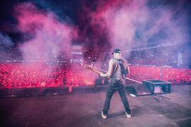 - After "New Divide", Mike and Emily took time to talk to the crowd in Spanish. In English, Mike said it was a blessing to share the first night of the From Zero World Tour with fans in Mexico. He thanked fans for their support of the new album.