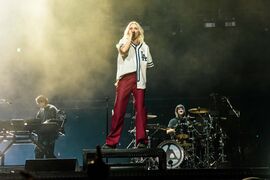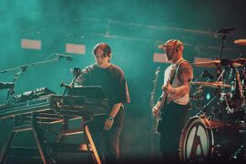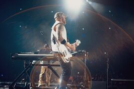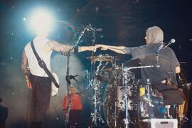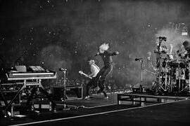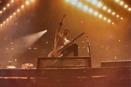 - Phoenix played the second verse of "Bleed It Out" on the front of Colin's drum riser.