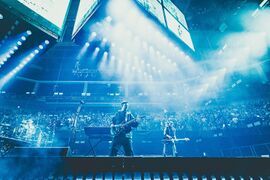 Similar to the two shows in Tokyo earlier in the year, Linkin Park sold this show out so they opened additional seating behind the stage in a full 360 arrangement. The stage was in the "endstage" layout, just with no visual screens behind the band and it was open. This was the only show of the tour that sold out, allowing the band to change the show configuration/production.