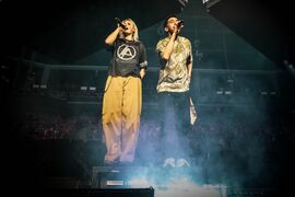 Mike rapped the first verse of Fort Minor's "There They Go" during the extended bridge of "Bleed It Out".
