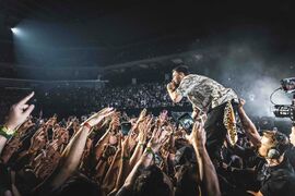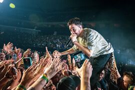 Mike went into the crowd and up into the seats during "In The End". He took a woman's phone who was recording and continued the video from his perspective. Before going out, he said that security was going to be mad at him.