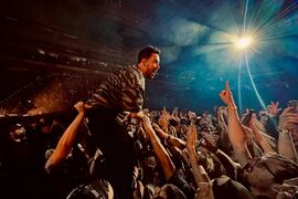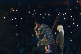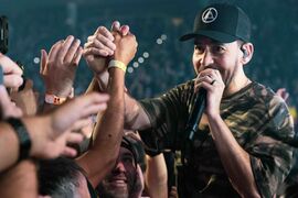 Mike went into the crowd during the extended transition of his solo medley. After giving his hat (signed by the whole band) to a fan and reading their sign, he rapped the demo verse of "Lift Off" from Post Traumatic. This is the first time a song from Mike's solo material has been played in a Linkin Park set.