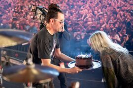 After his solo medley, Mike said, "I'd love to play the next song, but unfortunately for Emily..." as a cake was brought out. The band and the crowd sang 'Happy Birthday' to Emily.