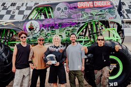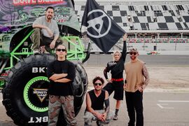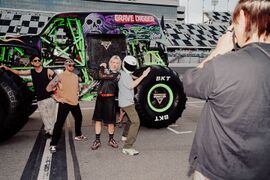 - Joe took the stage with his Monster Jam x Linkin Park collaboration racing helmet on. Before the show, the band shot a Monster Jam video on the racetrack with the Grave Digger monster truck.
