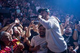 - Mike went into the crowd during the extended portion of his solo medley and gave his signed hat to a fan who had always joined his Twitch streams in 2020. He rapped the demo verse of "Lift Off" during this part. Mike extended his synth solo a little after the song ended.