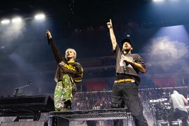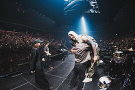 - PVRIS came out at the end of "Bleed It Out" and took group photos with Linkin Park on stage. The bands supported each other by wearing the other band's merch - Lynn wore a Linkin Park jersey during the PVRIS set and Joe wore a PVRIS shirt during the Linkin Park set.