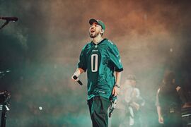 - Mike came out for the encore with a Philadelphia Eagles jersey on.